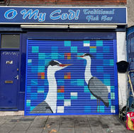 These include large commissions, brightening up shop shutters and painting with Bristol Mural Collective.